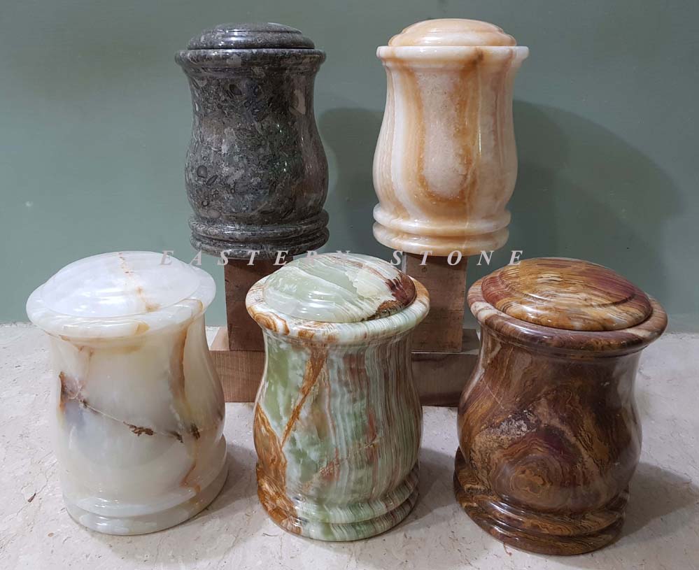 ONYX, MARBLE STONE ASH URN, CREMATION URN, FUNERAL URN, PET URN, MEMORIAL VASES