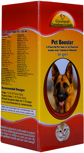A complete Dog/Pet tonic with Vitamins, Amino Acids & Minerals for correction of Vitamin ,Protein & Minerals Nutritional disorders .