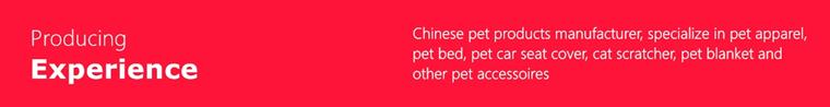 We are aprofessional pet products manufacturer, specialize in pet coat, pet sweater,pet bed, pet car seat cover, cat scratcher and other pet accessories.